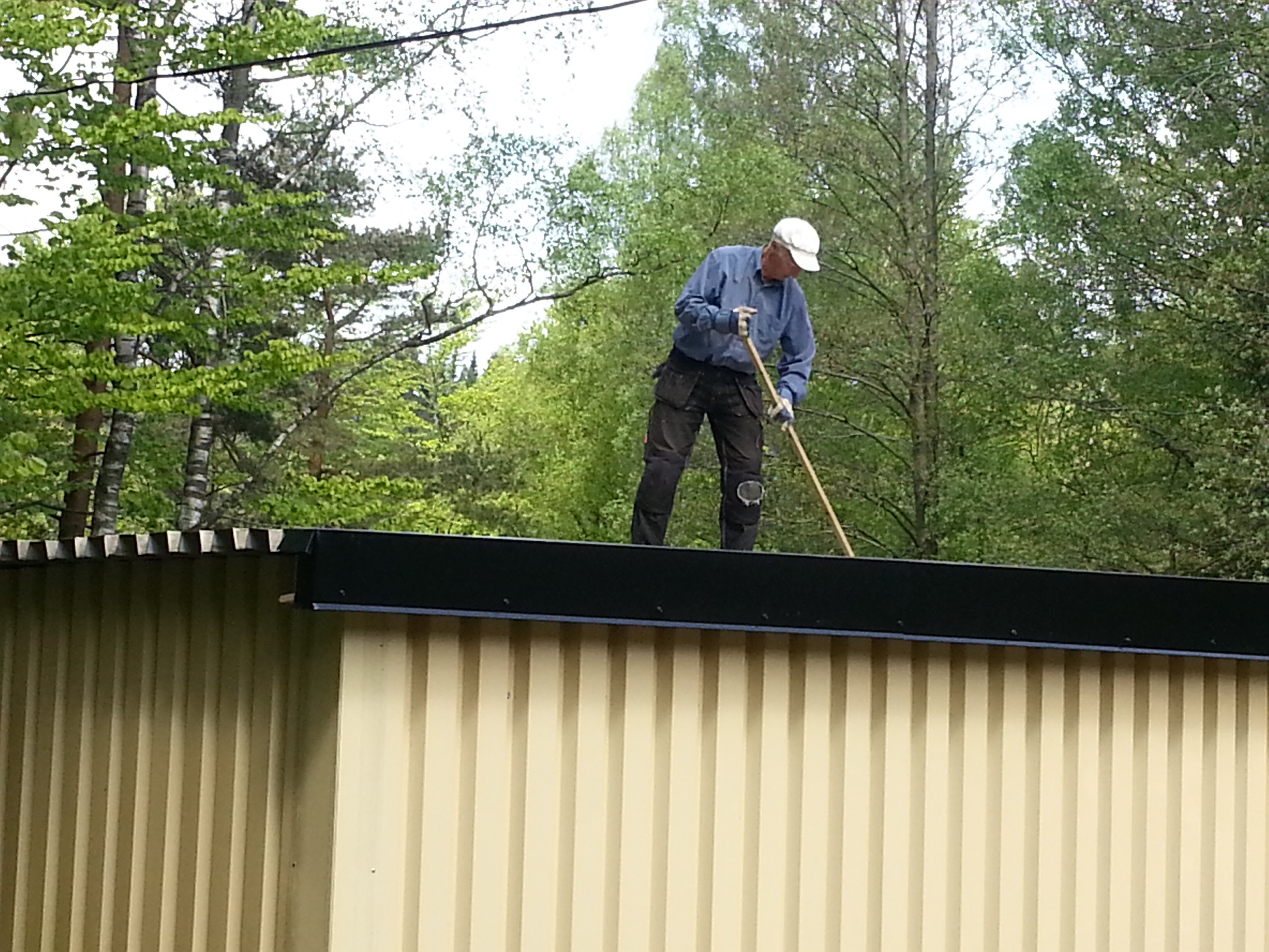 - Förrådets tak har fått plåt på ”gavlarna” samt taket rensat från allt nerfallna löv – grenar o.dyl.