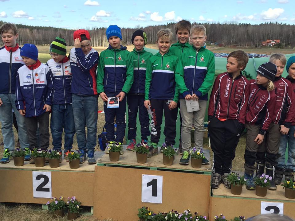 Simon som var först in skickade ut Tobias på den sista sträckan i en tre minuter stor ledning. Tobias sa att han var lite nervös innan start och om det var det som gjorde att han sprang åt fel håll vid startpunkten vet jag inte. Dock gjorde han det lite extra spännande för sina väntade lagkompisar och oss andra. Coole Tobias lät sig dock inte stressas upp av sin inledande bom utan lyckades trots det springa på starkt och utöka ledningen till en segermarginal på 5 minuter till slut före OK Tisaren från Hallsberg. Grattis alla fem.